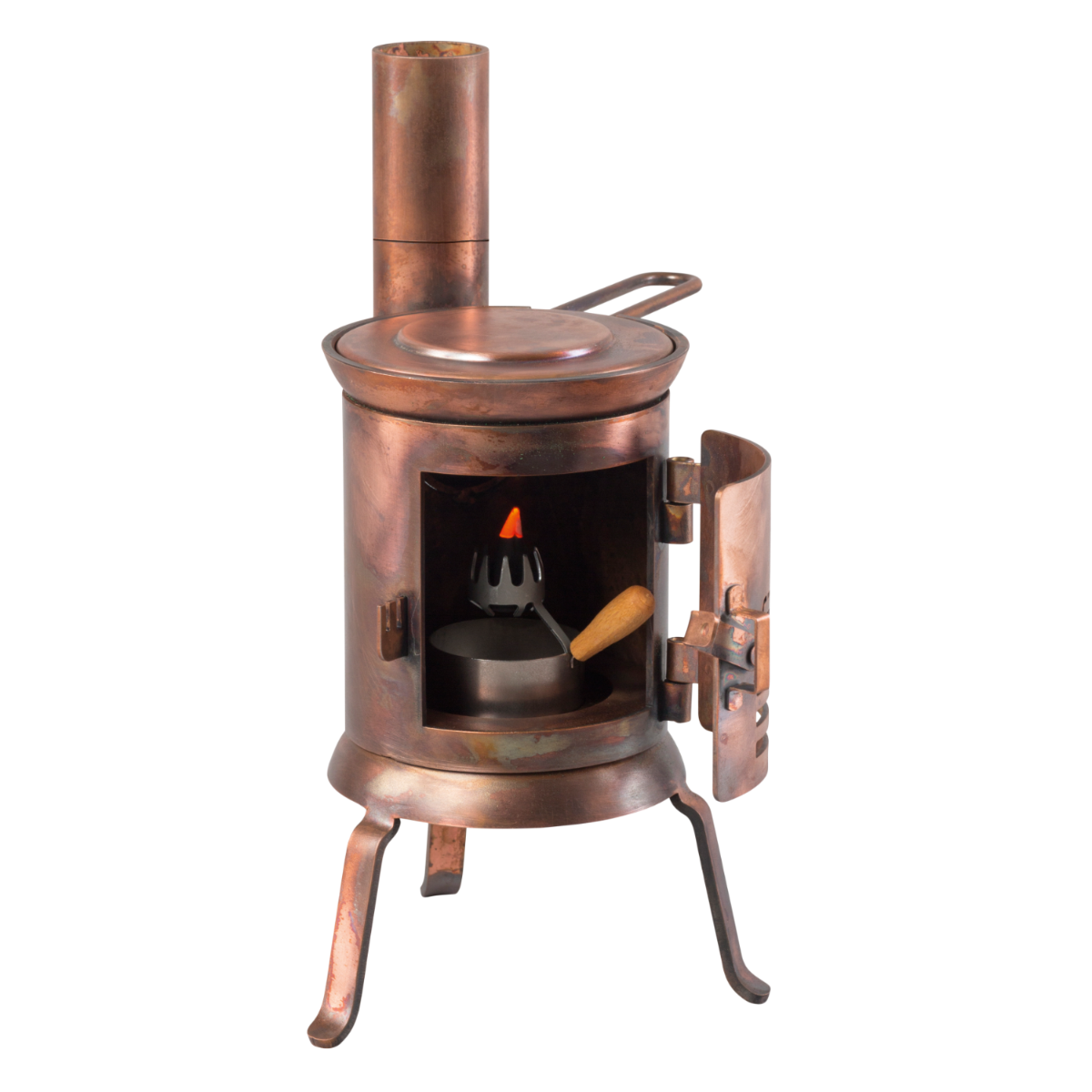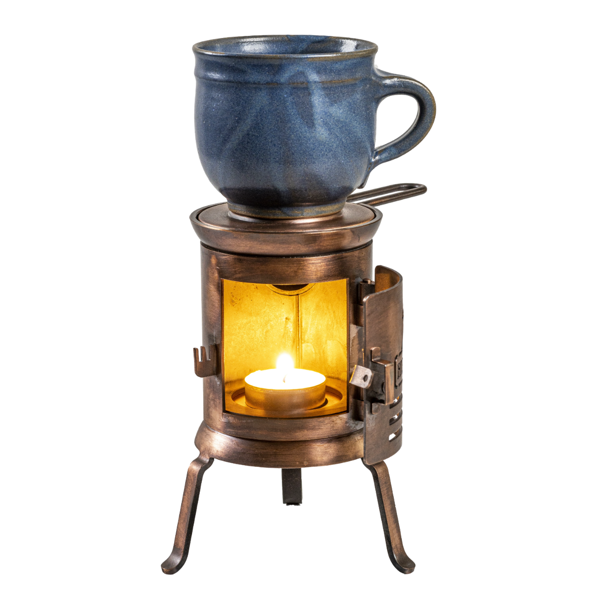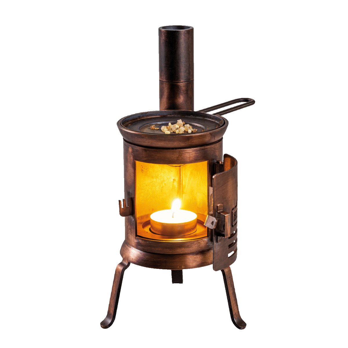 Jedná se o malý, robustní ocelový vařič o hmotnosti jednoho kilogramu. Je ručně vyrobený. Můžete mu svěřit spoustu věcí, které hezky voní a při hoření hřejí – ať už jsou to vonné tyčinky, vonná pryskyřice, hořící gel, metylalkohol nebo čajové svíčky. Pokud na mě položíte malou železnou pánev, ani smažené vejce není problém. Jsem docela bezpečný, ale můžu se hodně zahřát – stejně jako opravdový vařič. Ať už uvnitř nebo venku, určitě si mě užijete.